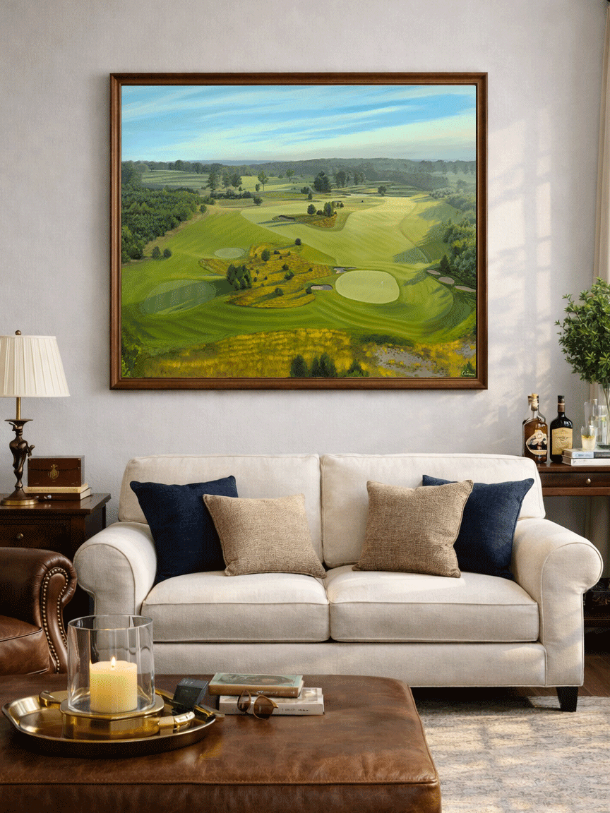 In 2023, Tom returned to his first golf course to restore the course to its original glory and then some. And it's beyond incredible. This painting was commissioned by the members as a thank you gift to the owner and as a celebration for the hard work so many have put into this place to bring it back to a high standard.