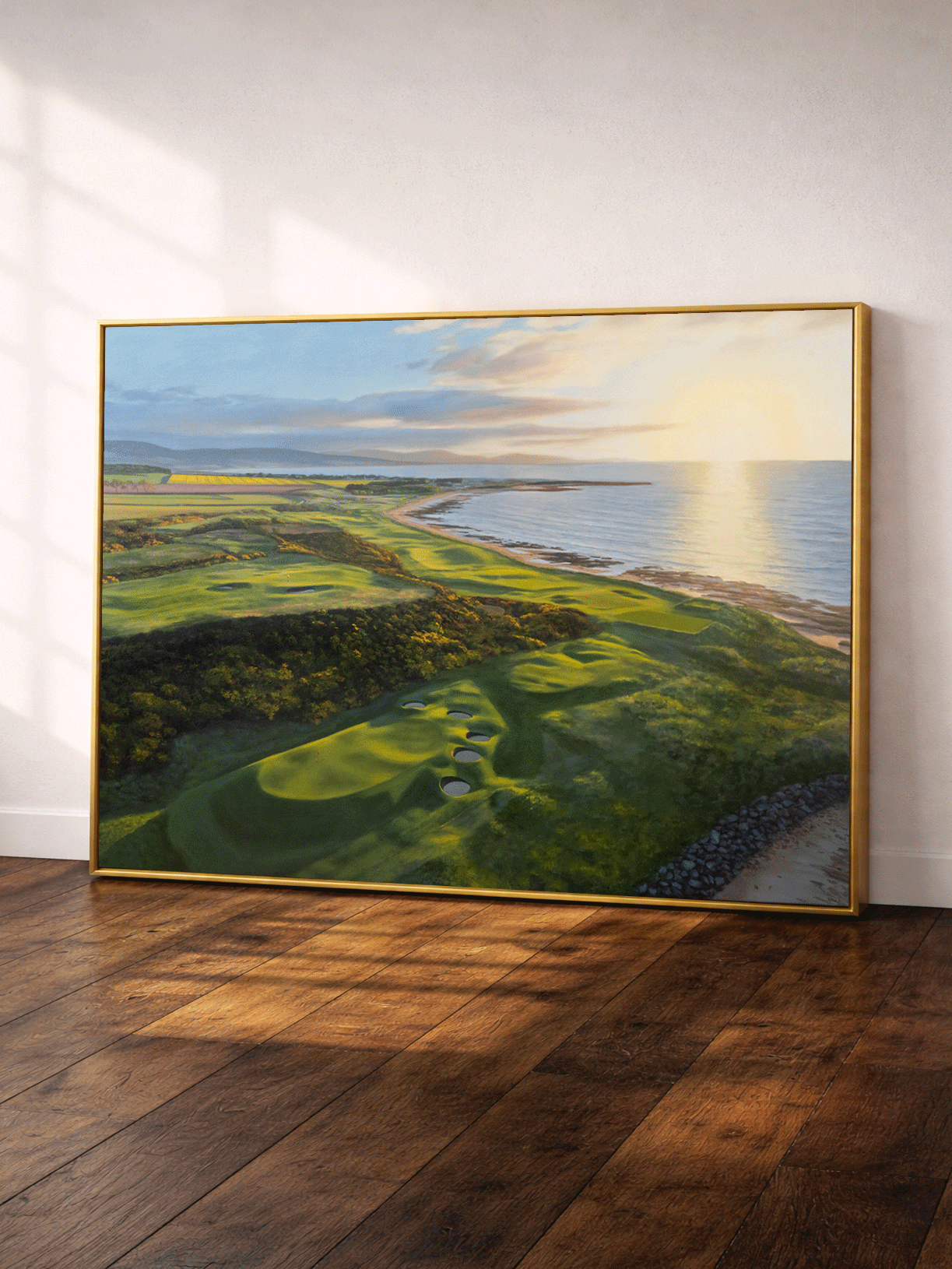 Prints include a white border with the Royal Dornoch crest. Canvas prints feature a mirrored edge for stretching. All prints are made to order. Please allow 2 to 3 weeks for production before shipping. Free shipping on all US orders. International buyers are responsible for applicable taxes, VAT, and shipping fees.