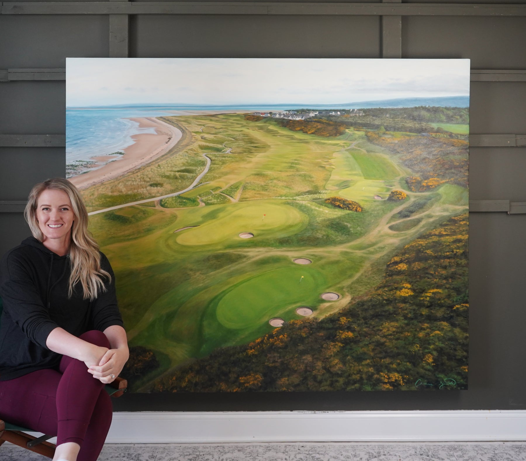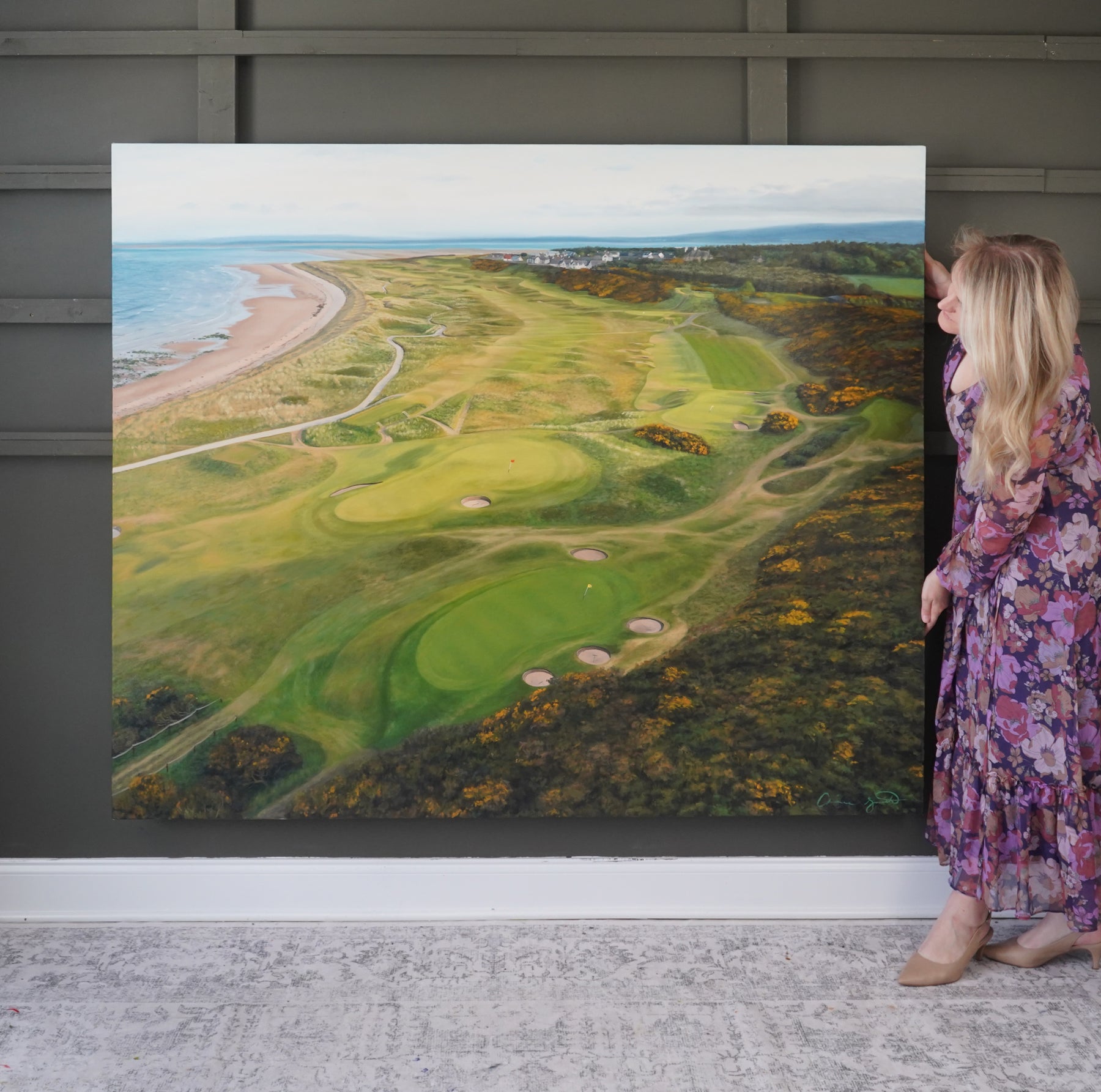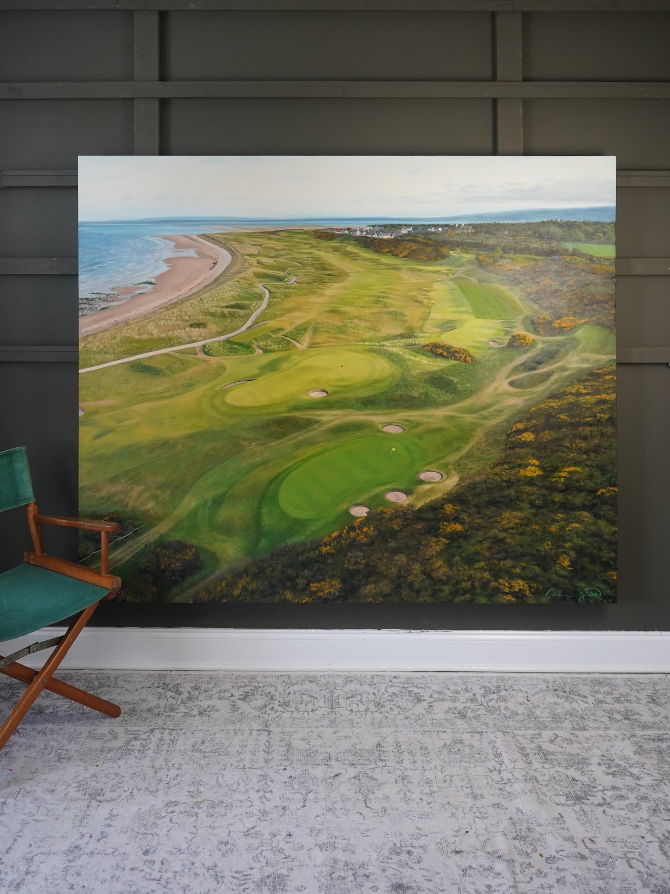 "The View from the 7th Tee" Original Oil Painting | 5' x 6' Royal Dornoch Golf Club Art